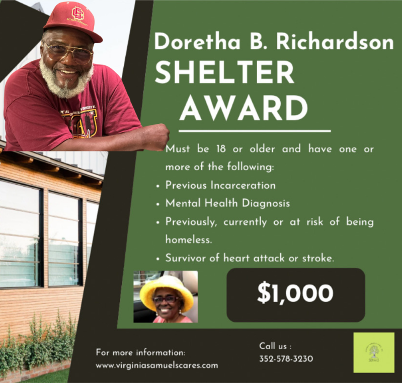Doretha B. Richardson is the mother of Virginia L. Samuels. She also was a loving, caring and dedicated women. We honor her life and her legacy through this shelter award.